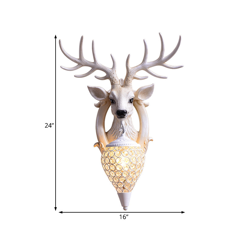 Clear Beveled Crystal Sconce With Rural White/Brown/Black Finish And Faux Elk Backplate - Bedroom