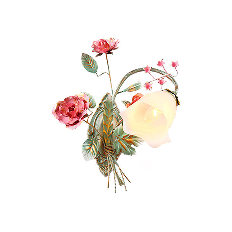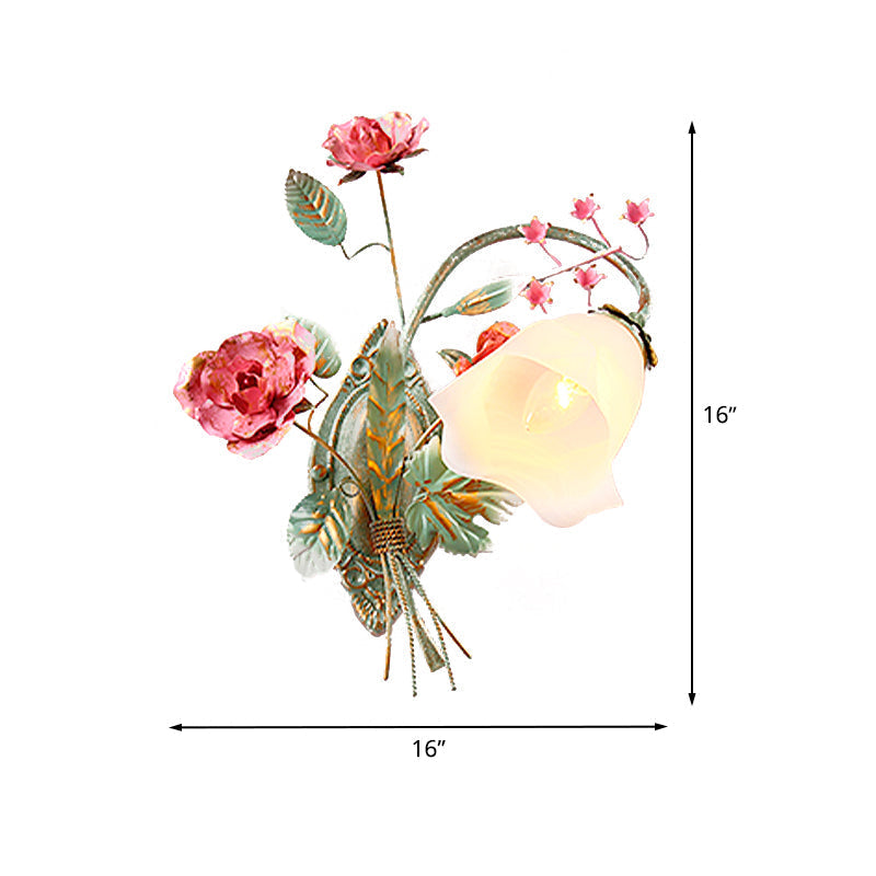 Opal Glass Wall Sconce Countryside Blue Bedroom Light Left/Right Mounting