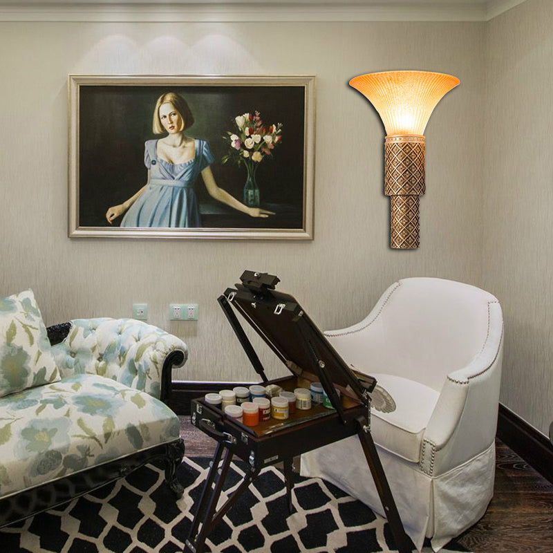 Applique Murale Style Lodge en Verre et Résine Jaune - Applique 1 Lumière avec Abat-Jour Cloche pour Salon en Or