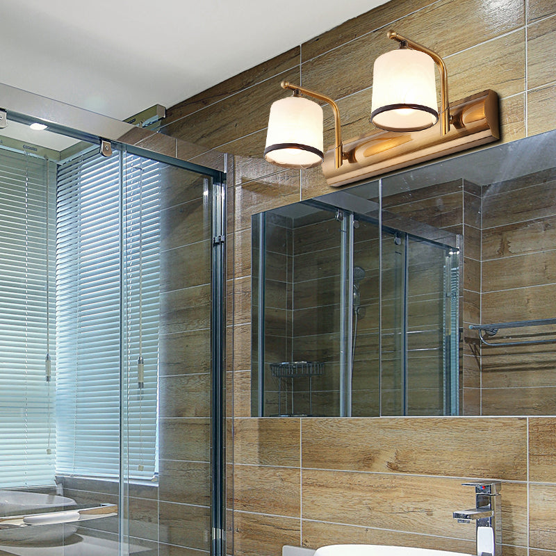 Vintage Gold Wall Mounted Sconce With Opal Blown Glass - 2/3 Bulbs Cylinder Design