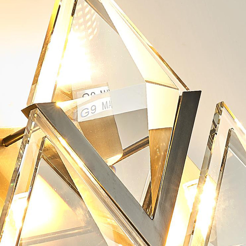 Applique Murale Vintage Gold Rhombus avec Cristal Clair - Lampe Murale à 3 Têtes