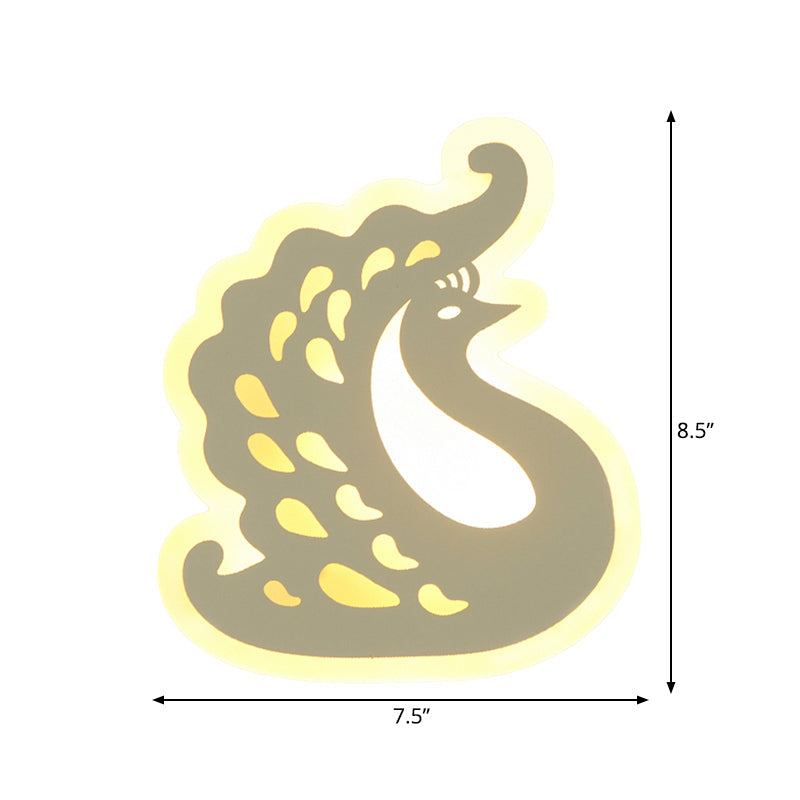 Modern Acrylic Animal Led Wall Sconce - White Finish For Hallway Illumination / Warm Peacock