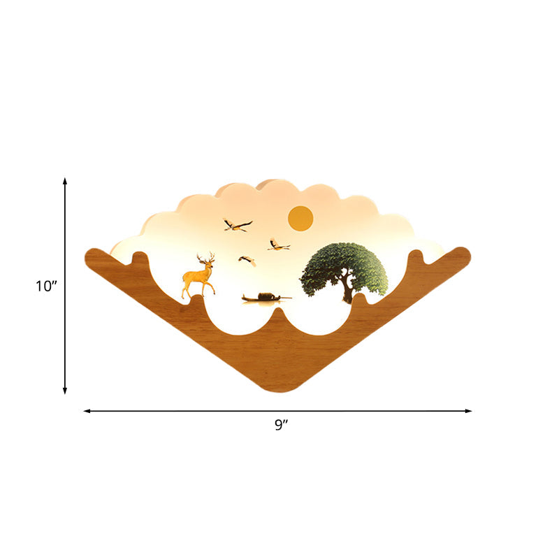 Led Asian Style Acrylic Fan Shaped Wall Lamp With Elk Deer & Forest Pattern Wood / B