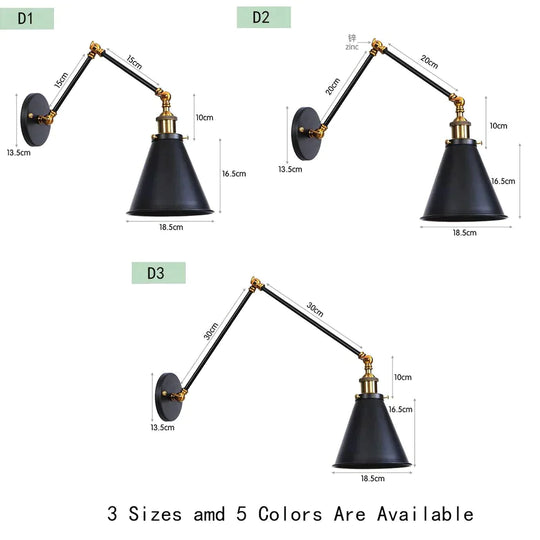 Applique murale réglable antique en fer 5 couleurs pour loft, lampe murale rétro pour chambre à coucher, LED d'intérieur
