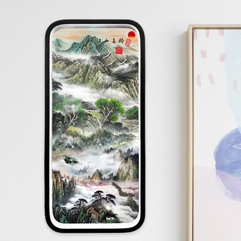 Applique murale LED en métal noir avec une superbe scène de montagne asiatique pour salle familiale