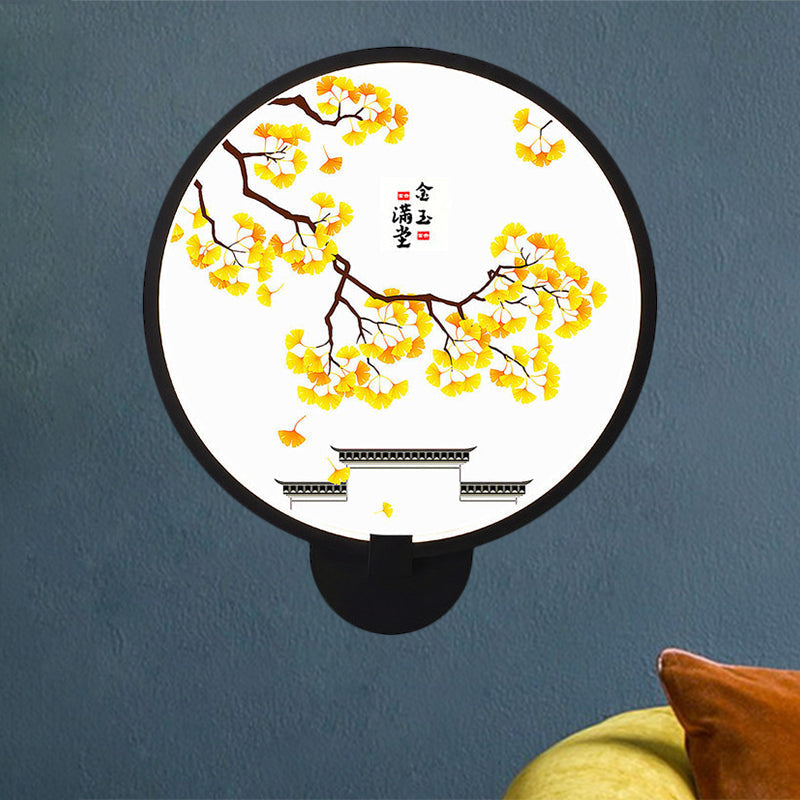 Rounded Natural Scenery Mural Acrylic Led Wall Mounted Light In Black - Asia Style