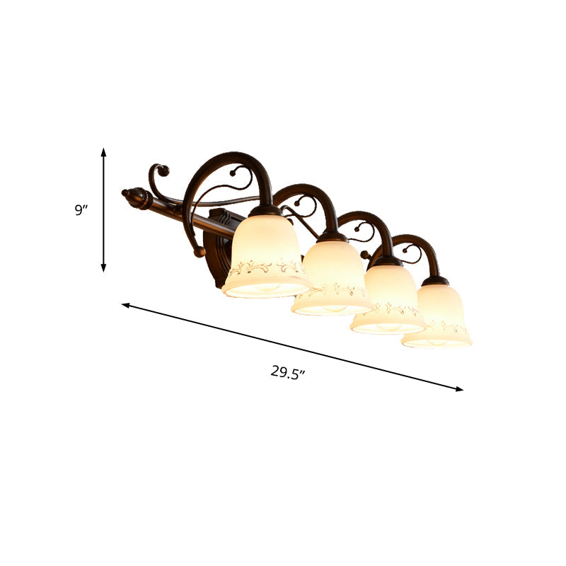 Applique murale de salle de bain Bell classique avec verre dépoli, 2/3/4 lumières - éclairage de maquillage brun rouge