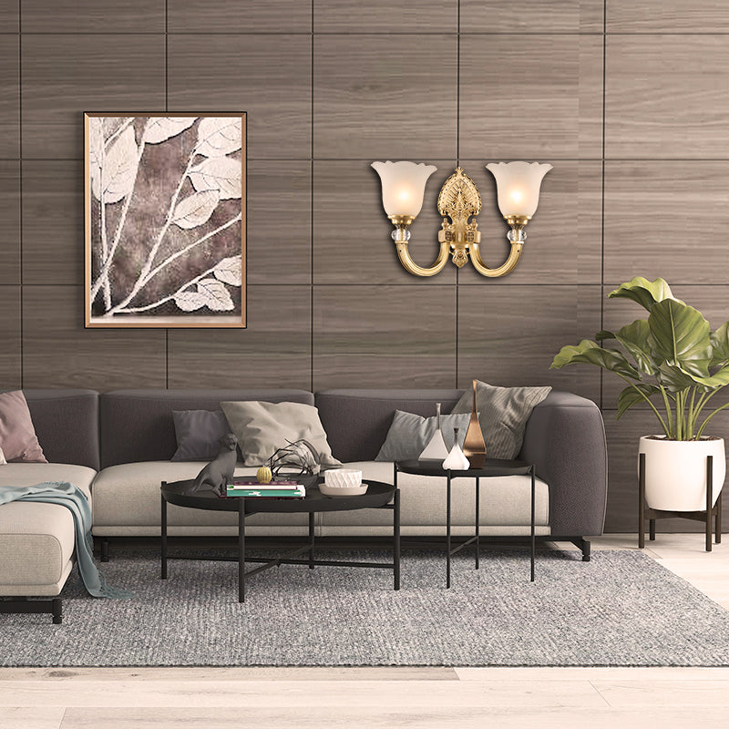Frosted Glass Wall Sconce With Vintage Style & Golden Backplate