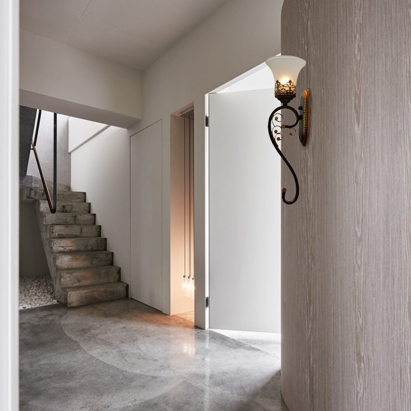 Applique murale noire et dorée avec bras courbé - Luminaire en métal Countryside