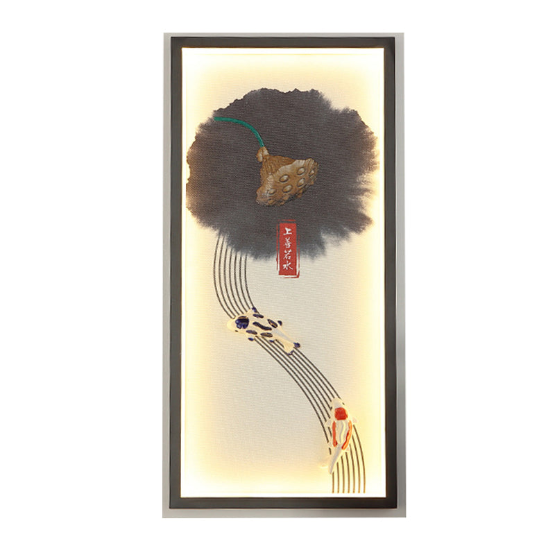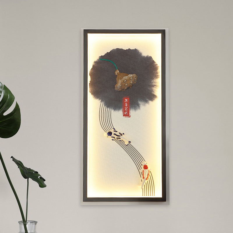 Applique murale à LED de style chinois - Luminaire mural en graines de lotus et poissons noirs