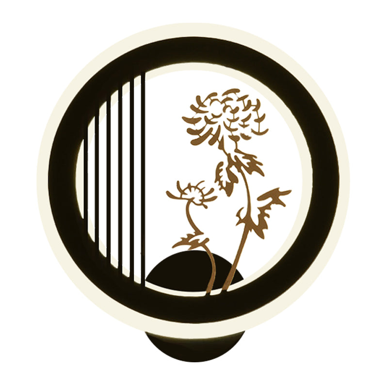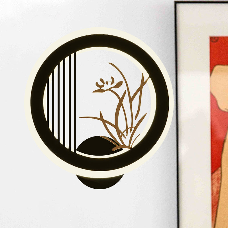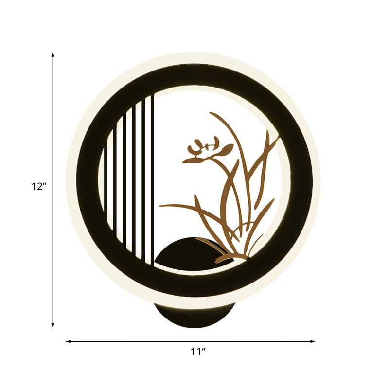 Chinese Acrylic Led Wall Light Fixture In Black For Living Room Décor With Chrysanths/Orchid Flower