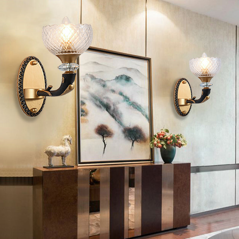 Retro-Style Prismatic Glass Bowl Wall Light - Angled Mounted Lamp In Black And Gold
