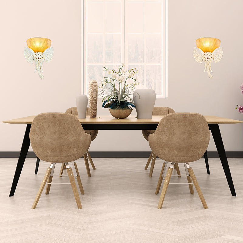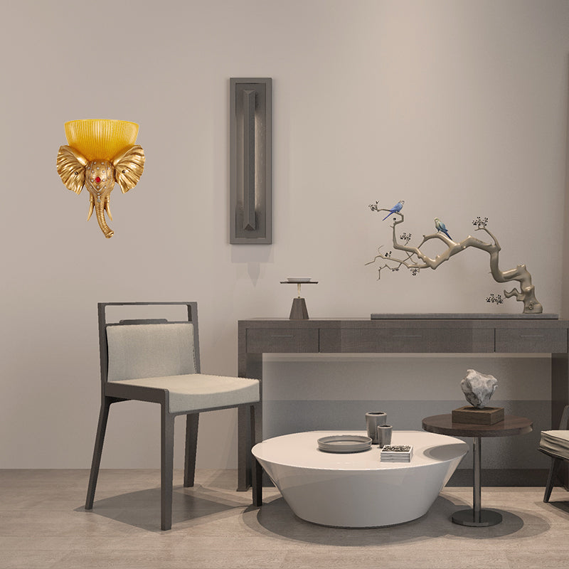 Applique Murale Bol Colonial - Verre Ambré avec Nez d'Éléphant - Gauche/Droite