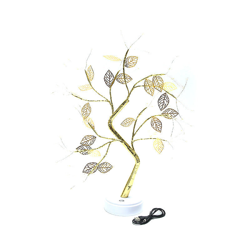 Lampe de chevet arbre USB moderne : lampe de table LED dorée métallique pour salon