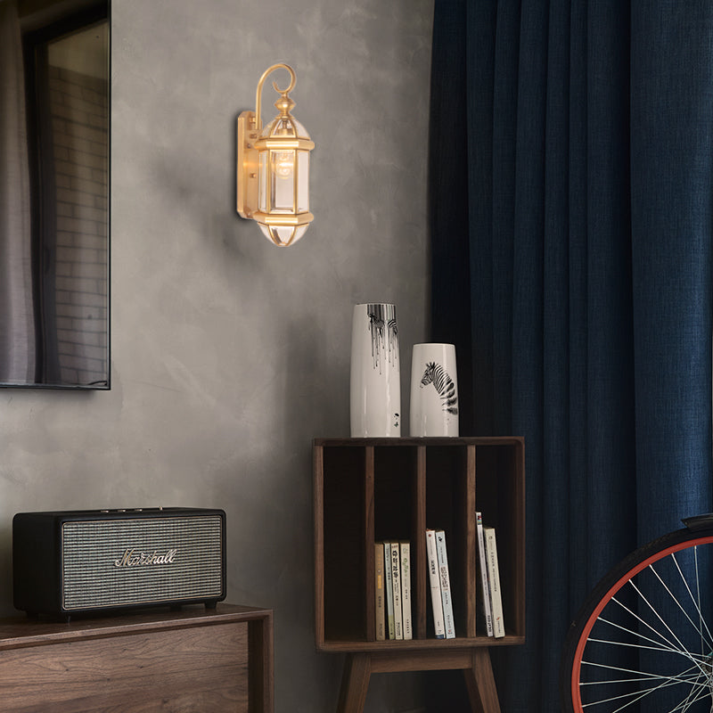 Applique murale rétro en laiton à bras incurvé avec montage encastré pour salon