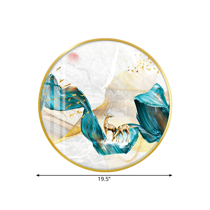 Green Asian Led Wall Mounted Light With Elk Bird And Tree Pattern