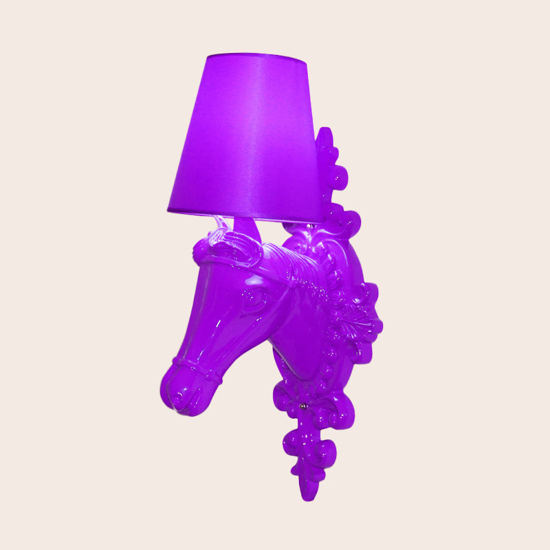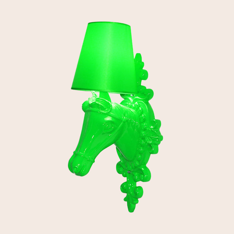Applique murale d'intérieur traditionnelle à tête de cheval - tissu rouge/jaune/orange, éclairage mural à 1 lumière