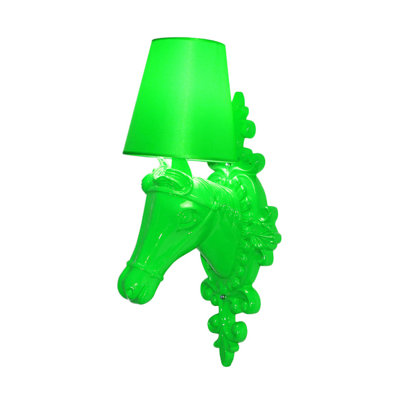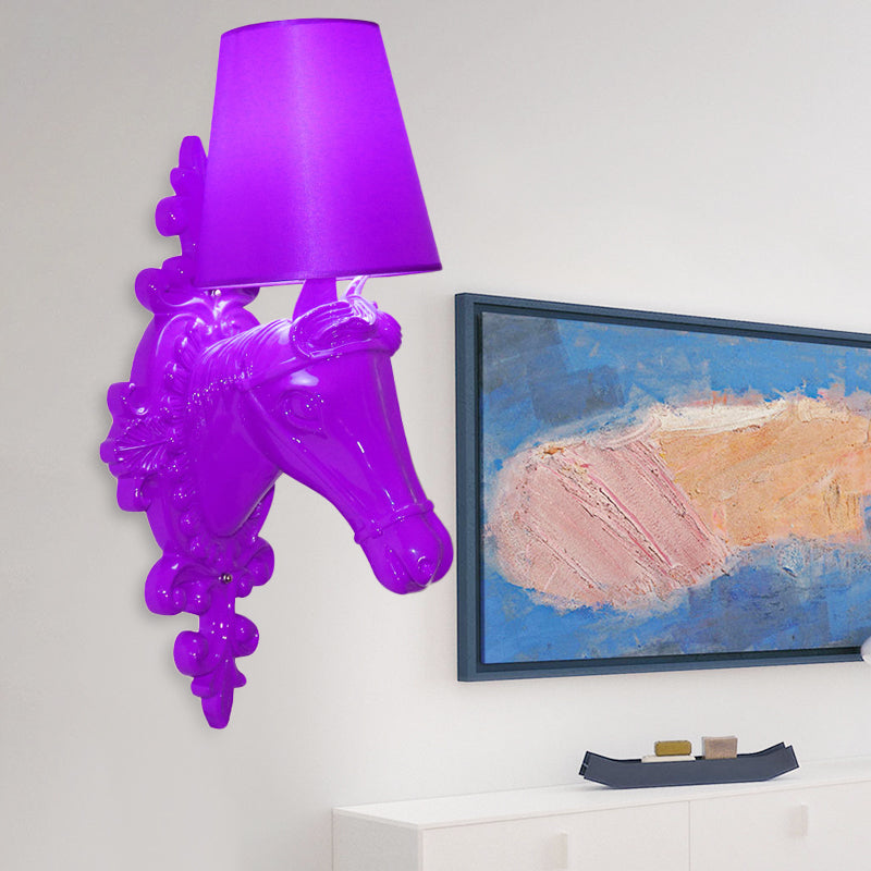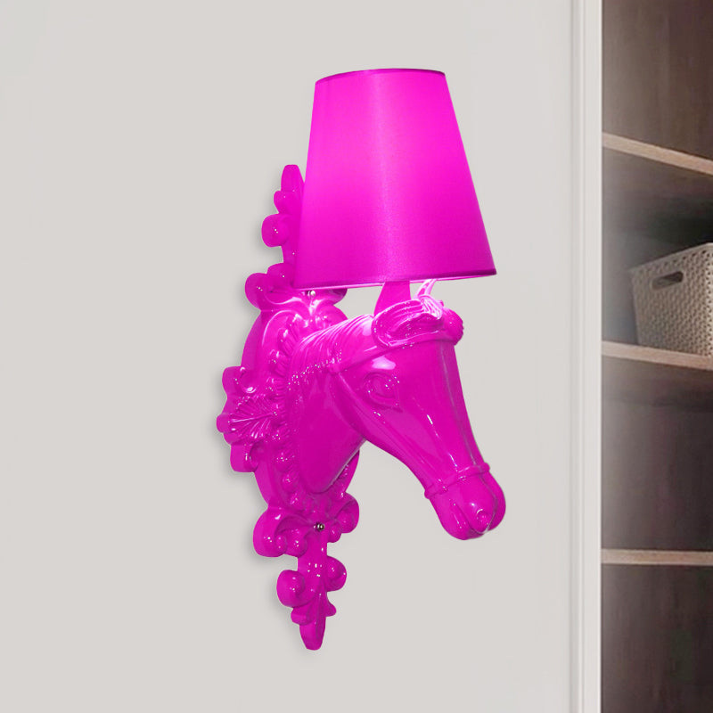 Traditional Indoor Horse Head Sconce Lamp - Fabric Red/Yellow/Orange 1-Light Wall Mounted Lighting