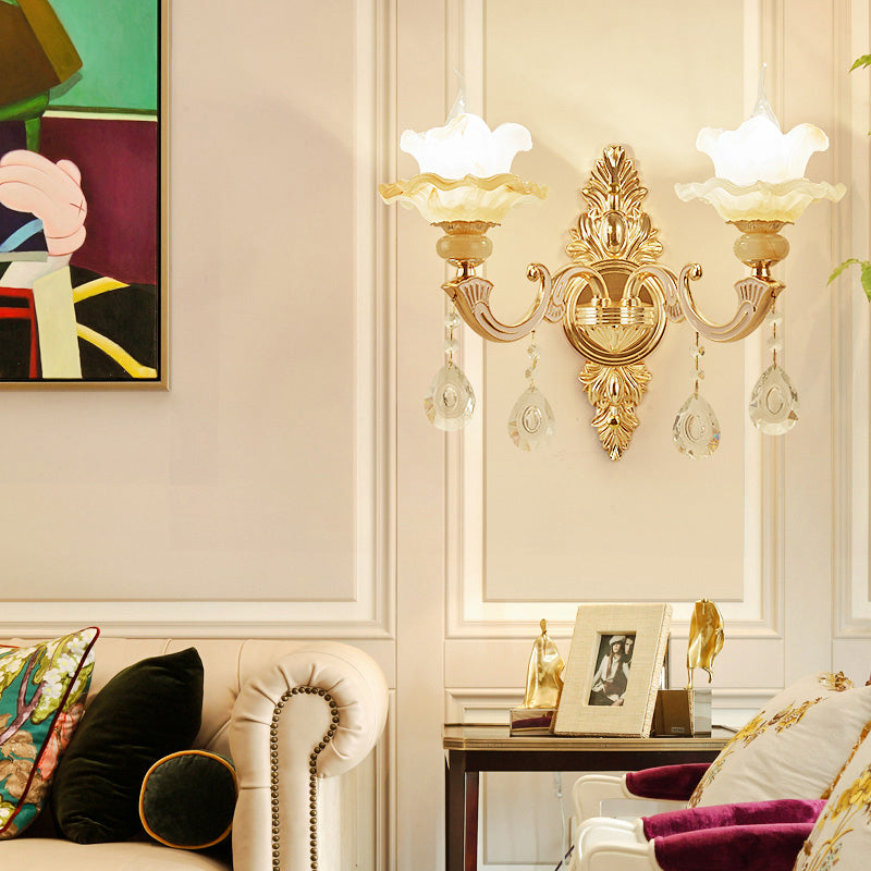 Vintage Gold Frosted Glass Lotus Wall Sconce For Living Room Lighting
