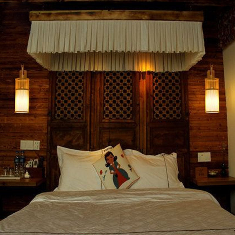 Asian Bamboo Wood Wall Lamp - Geometric Shape Light Fixture For Bedroom / B