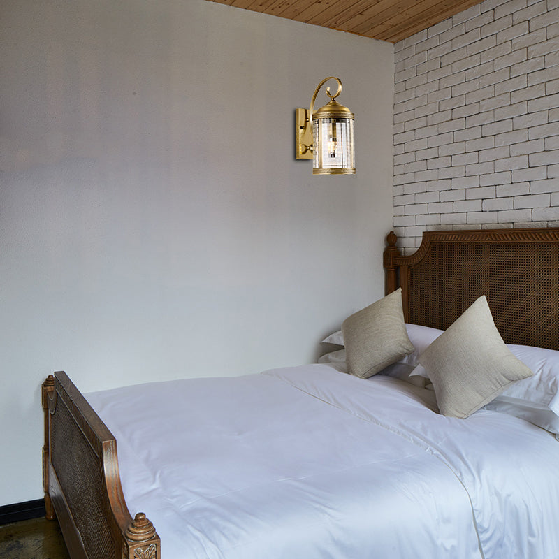 Applique murale traditionnelle en métal doré avec abat-jour en verre transparent pour porche