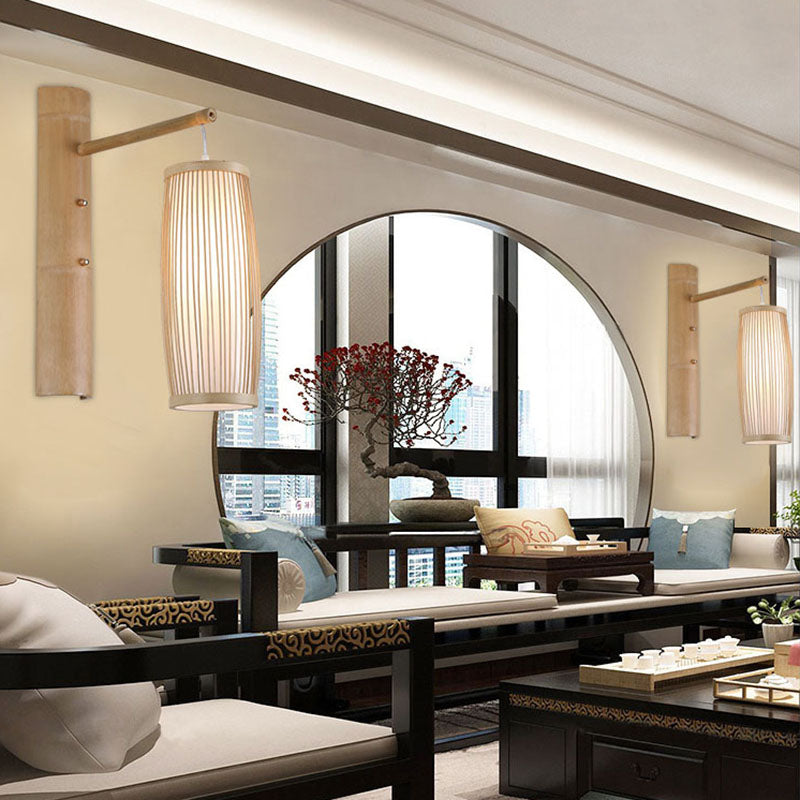 Applique murale en forme de lanterne de chevet en bambou fabriquée à la main - Lampe à montage en bois asiatique