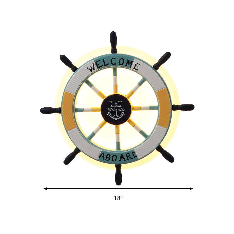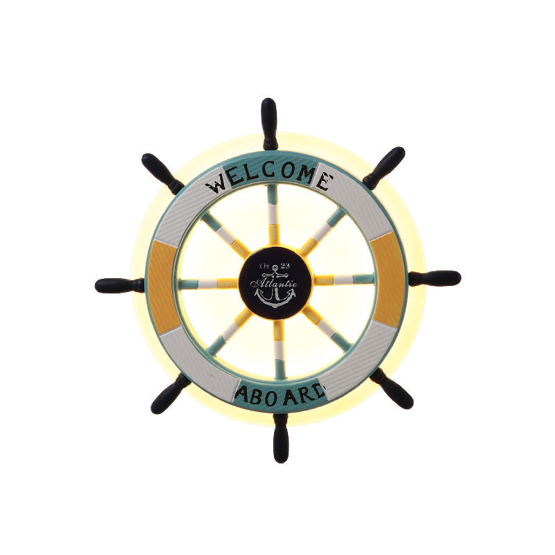 Applique murale de gouvernail de dessin animé adaptée aux enfants - Applique LED en bois blanc pour crèches et magasins