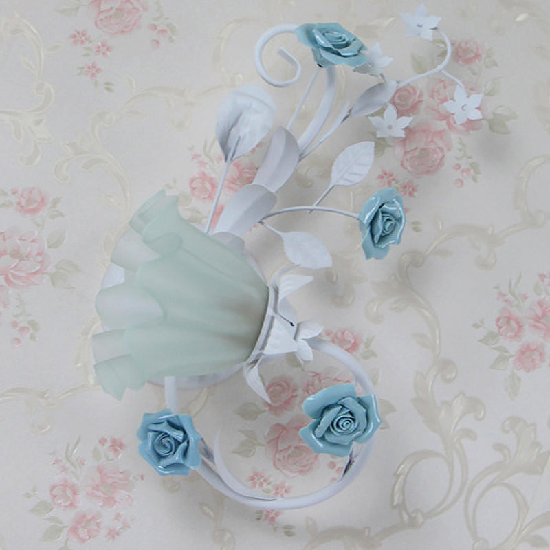 Flower Shade Frosted Glass Wall Sconce - Countryside 1-Light Bedroom Lamp In White