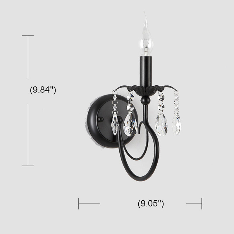 Black Metal Candelabra Wall Sconce With Crystal Accent And 1 Bulb / A