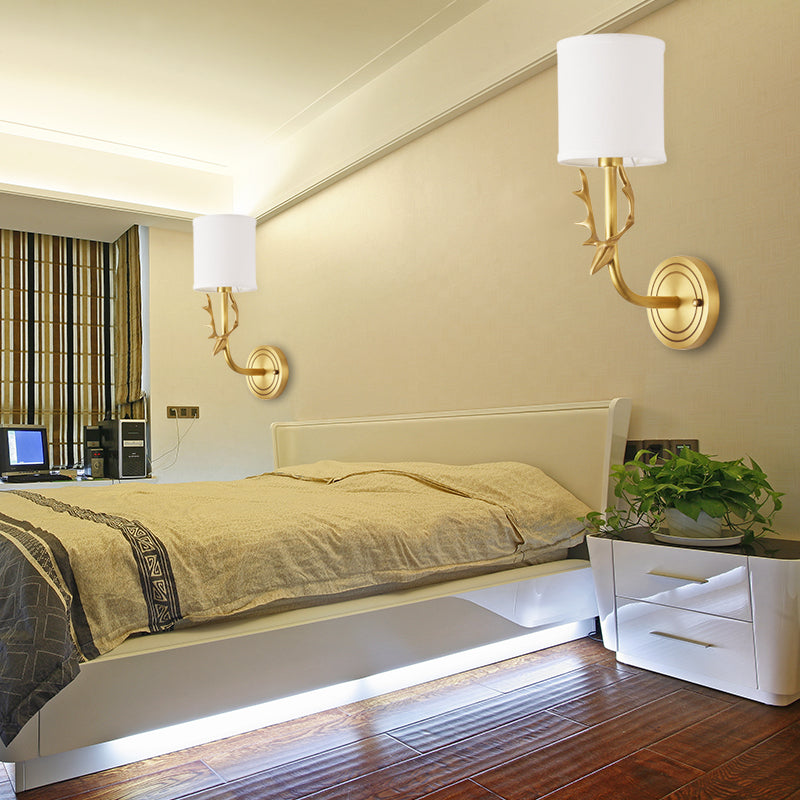 Metal Elk Sconce Lighting - Rustic Wall Mounted Lamp In Black/Gold With Fabric Shade 2 / Gold