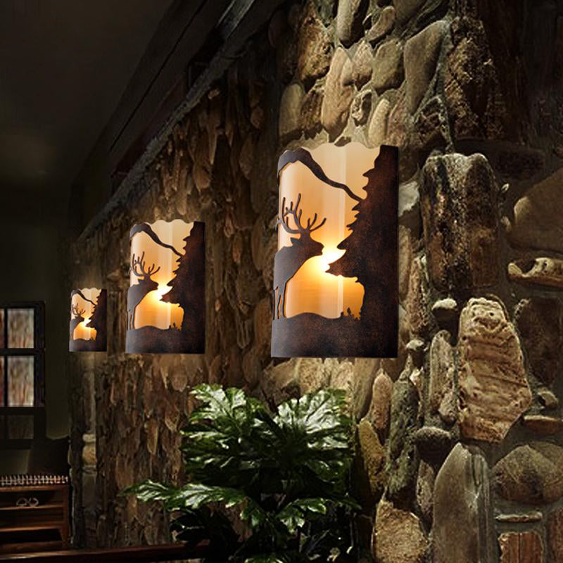 Applique murale en métal rouille avec abat-jour en tissu - Design demi-cylindre à 1 lumière - Éclairage monté de style campagnard