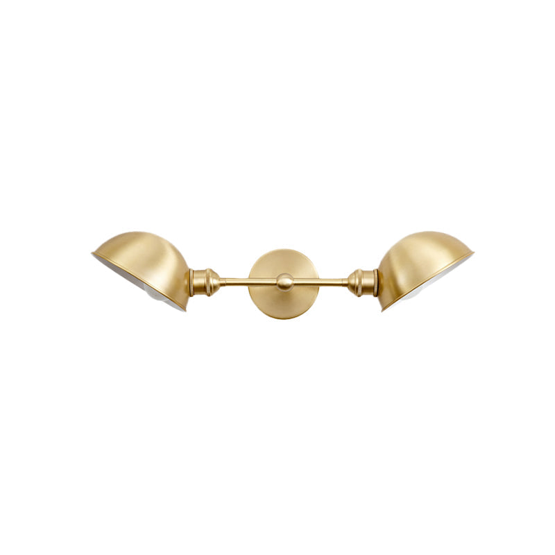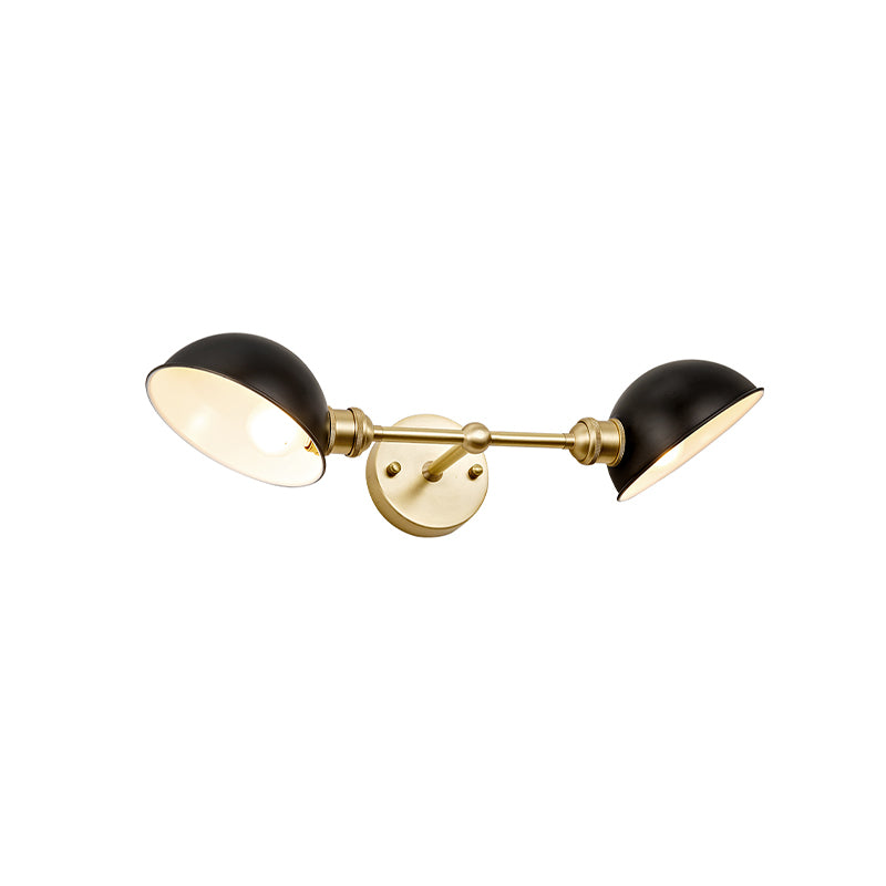 Vintage Metal Dome Vanity Light Fixture With Dual Bulbs Wall Mount Bathroom Lamp In Black/Brass