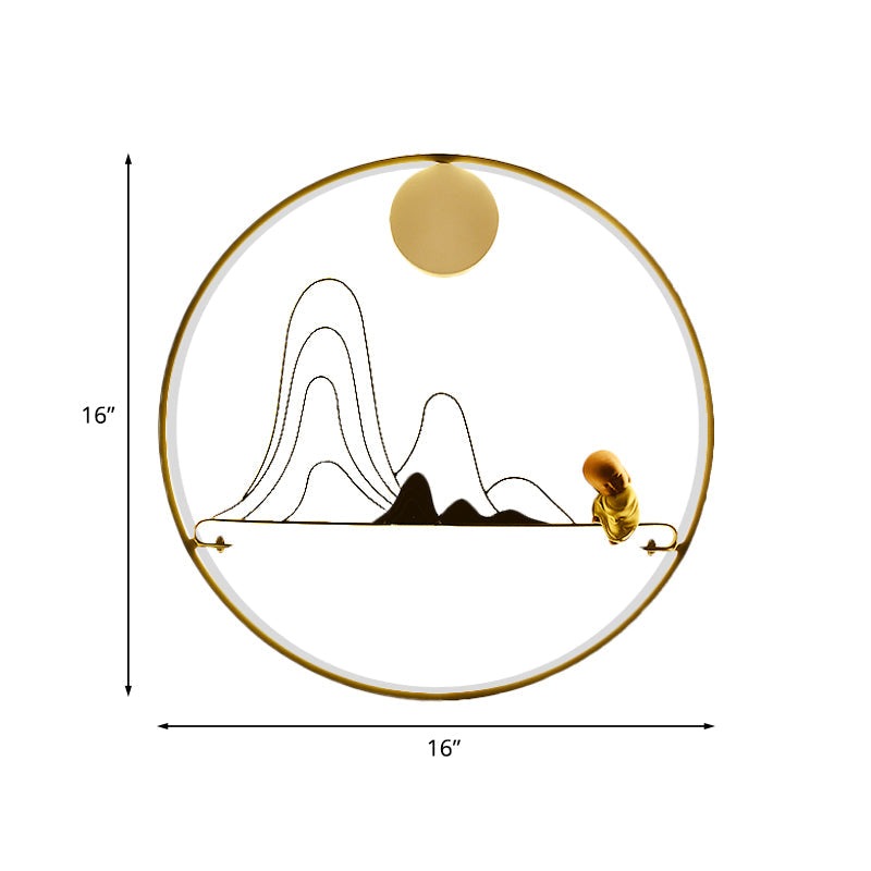 Applique murale LED dorée en tissu de style chinois - Applique murale montagne et moine