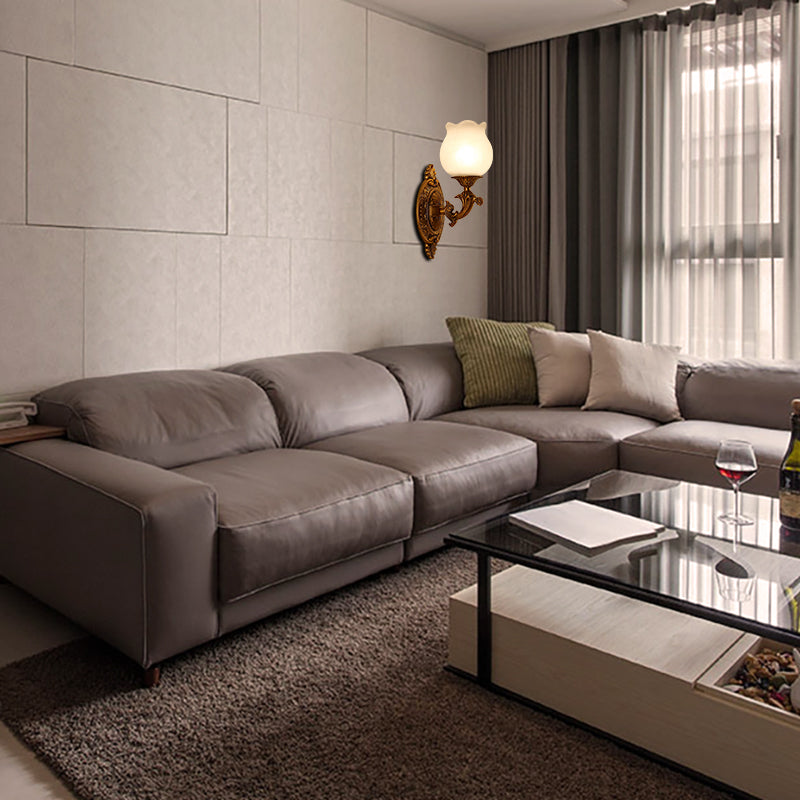Applique murale élégante en verre Petal Milk avec 1 ampoule - Support mural traditionnel pour chambre à coucher en or