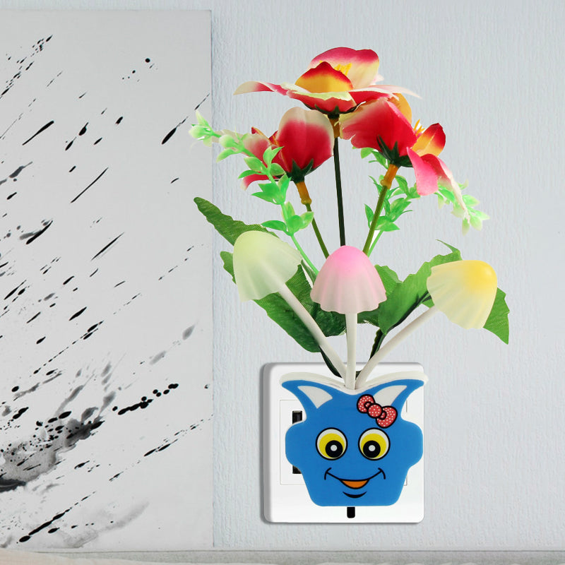 Contemporary Plastic Blooming Flower Wall Nightlight - Yellow/Pink/Peach Led Night Light With Plug