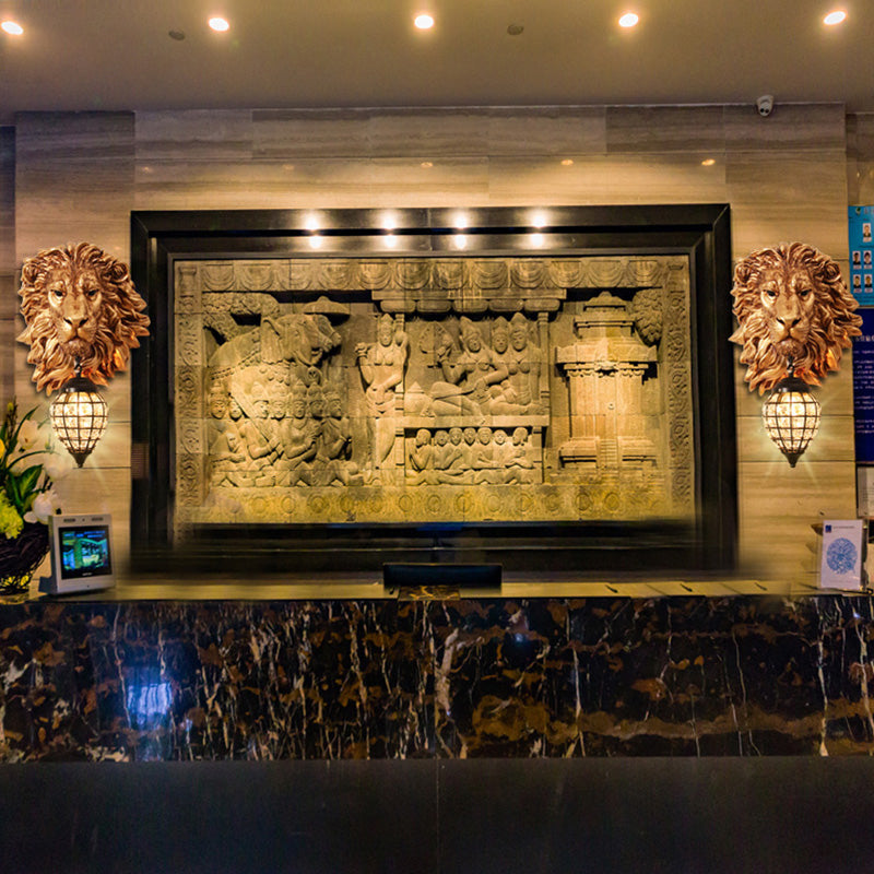 Éclairage d'applique de lion en résine d'or rustique: applique murale d'intérieur à 1 lumière avec abat-jour en forme de larme