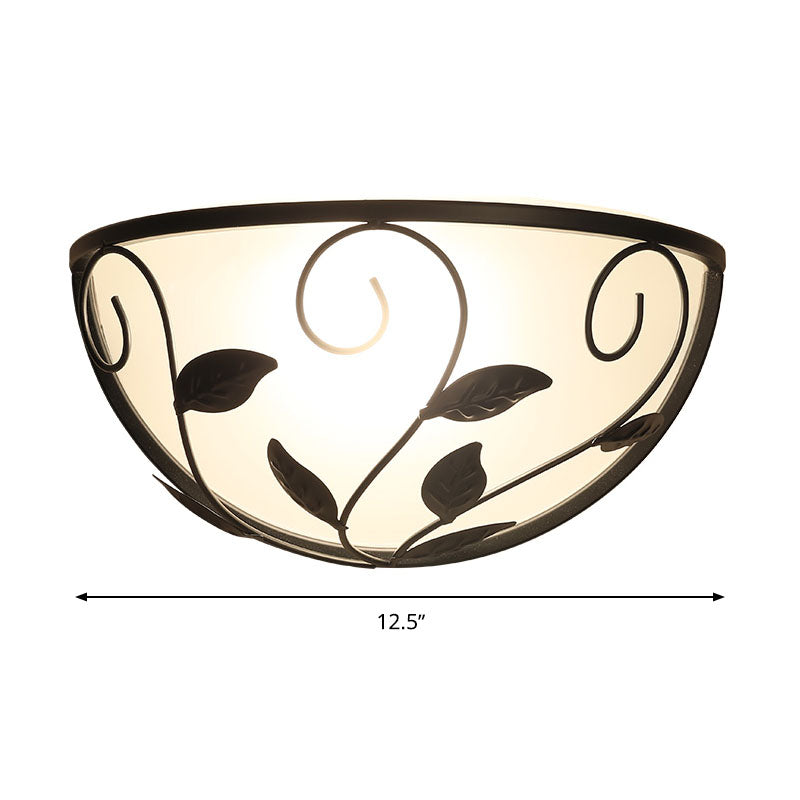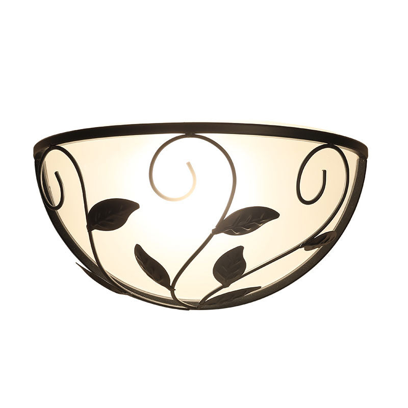Countryside Cream Glass Wall Lamp With Cane Decoration - Black Flush Mount