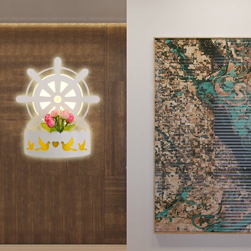 White Led Sconce With Shelf - Stylish Wall Light For Adult Bedroom / A