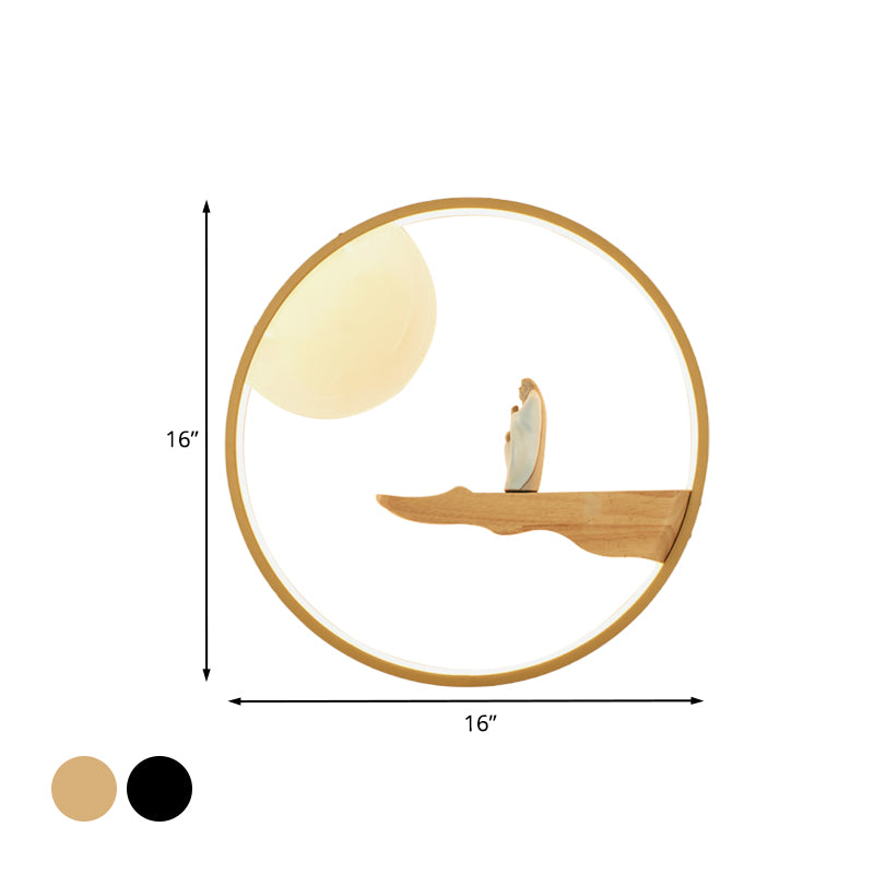 Chinese Style Led Wall Sconce Lighting - Thinker Study Room Mural Lamp In Black/Beige Wood