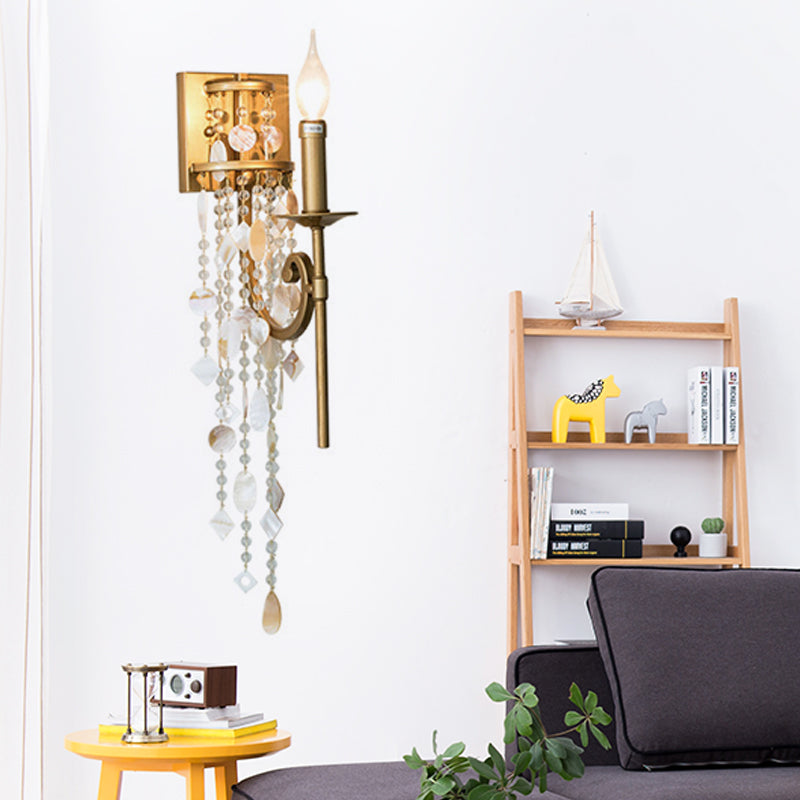 Applique murale classique en forme de torche en métal pour chambre à coucher en marron/doré - Applique à 1 lumière (avec/sans abat-jour)