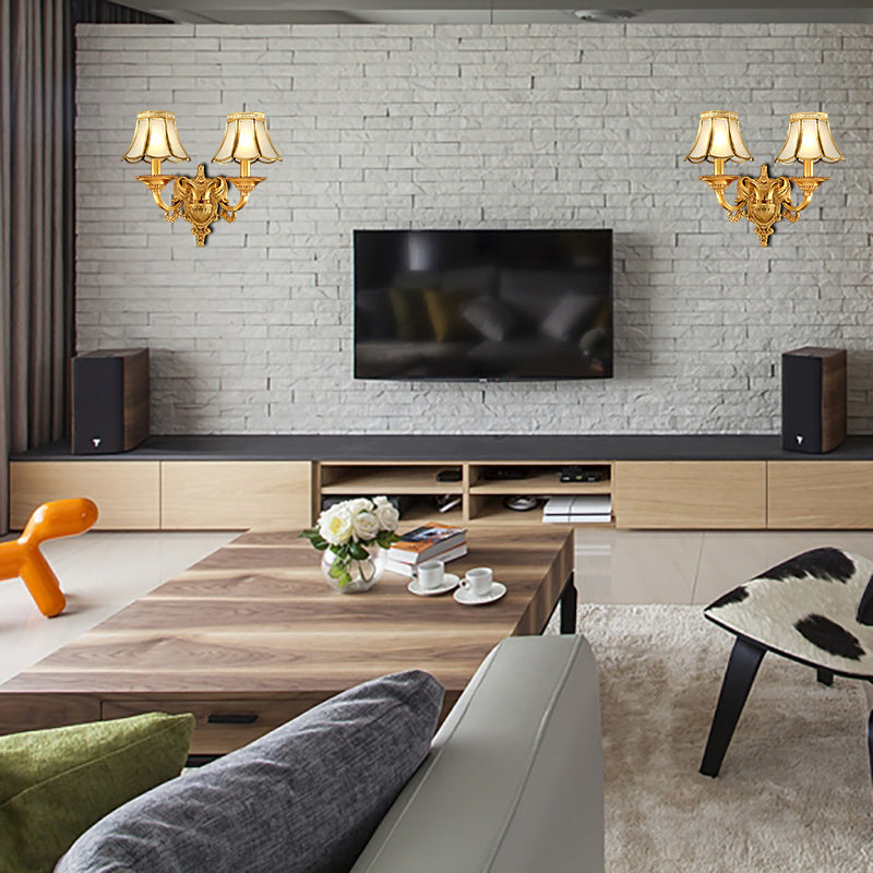 Applique murale en métal en laiton pour salon - Design festonné traditionnel, demi-ampoule - Idéal pour l'éclairage ambiant