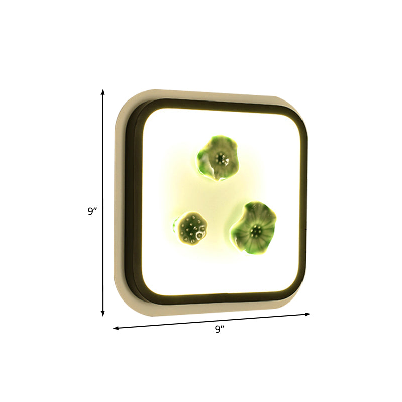 Chinese Style Lotus Wall Lamp: Led Porcelain Light In Black And White Square Design Black-White