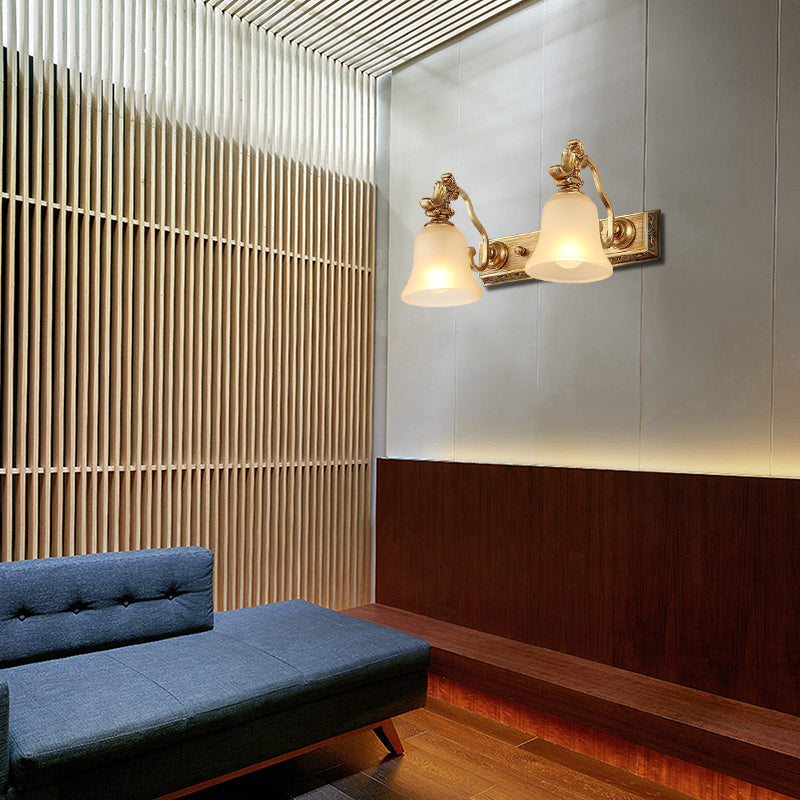 Frosted Glass Bell Wall Mount Lamp - Traditional Bathroom Vanity Lighting Fixture In Brass 2 /