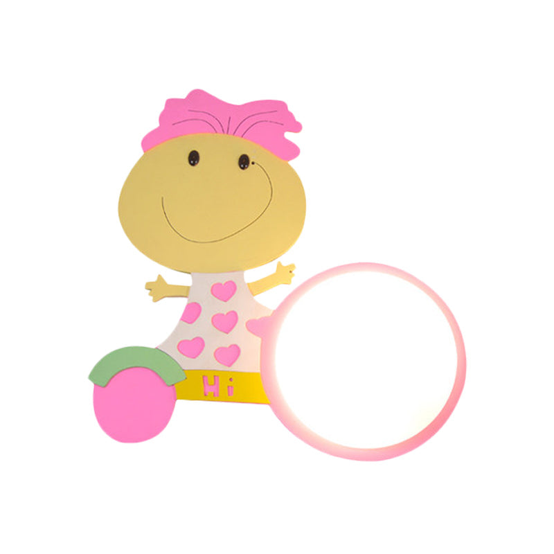 Warm Wood Cartoon Led Wall Sconce For Nursery Or Bedroom Pink / Kid