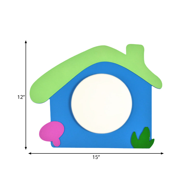 Warm Wood Cartoon Led Wall Sconce For Nursery Or Bedroom Blue / House