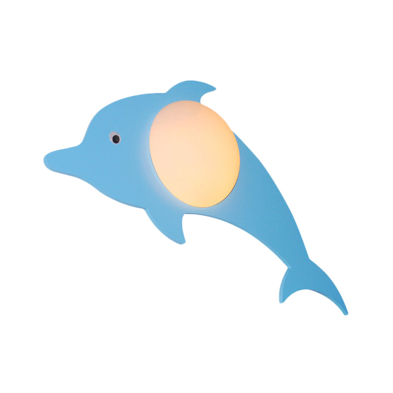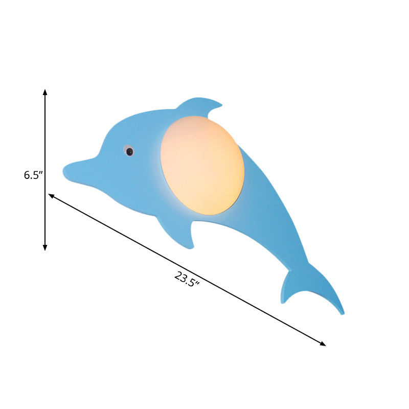 Warm Wood Cartoon Led Wall Sconce For Nursery Or Bedroom Blue / Dolphin