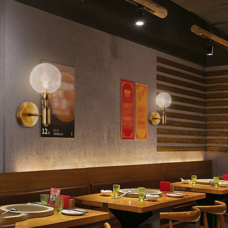 Applique murale à 1/2 lumières de style industriel pour chambre à coucher - Fini noir/laiton avec abat-jour en verre transparent