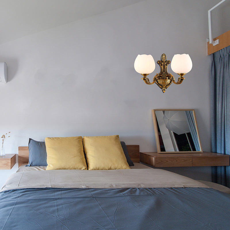 Vintage Antique Brass Wall Sconce With Milky Glass Shade: Stylish 1/2-Light Bowl 2 /