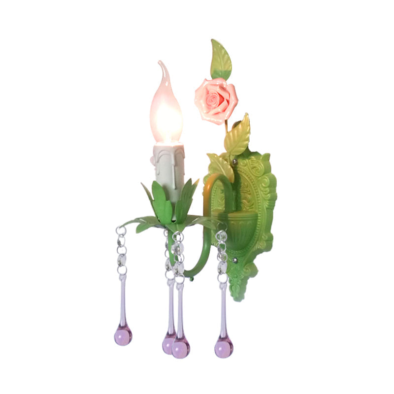 Applique Murale Traditionnelle à 1 Ampoule - Luminaire Chandelier en Cristal à Facettes pour Salon en Blanc/Vert