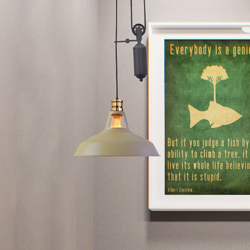 Farmhouse-Style Barn Pendant Ceiling Lamp - Rustic Hanging Light With Pulley For Bedroom White